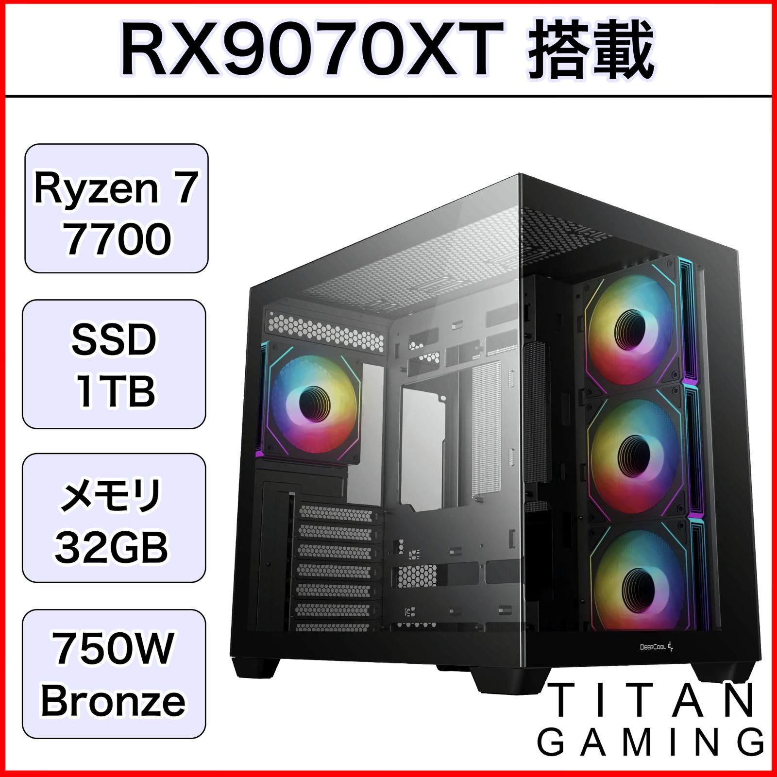 | メーカー | 新品ケースゲーミングPC RX9070XT/Ryzen |