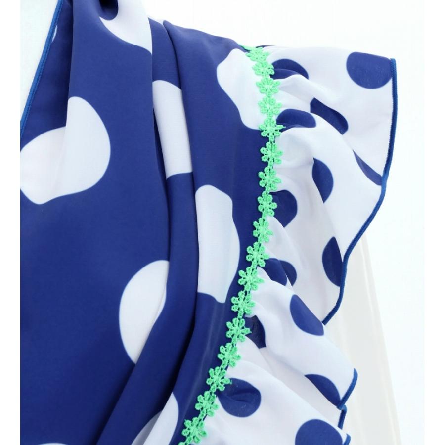 - ダンス・バレエ > チアリーディング > しろ シージョ ターコイズ白水玉 エプロン ショート丈 生成レース+水色 しろ シージョ ターコイズ白水玉 エプロン ショート丈 生成レース+